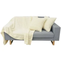 Couverture Et Housse De Coussin 3 Pièces Fausse Fourrure Crème