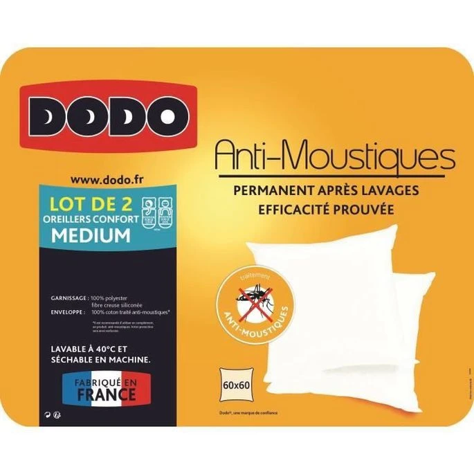 DODO Lot De 2 Oreillers ANTI-MOUSTIQUES 60x60cm