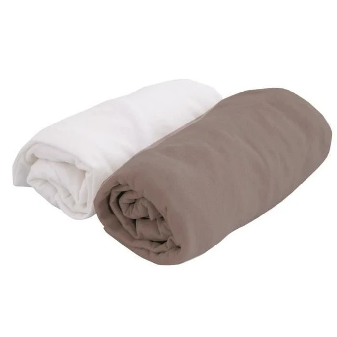 DOUX NID Lot 2 Draps-Housses Jersey Blanc Et Taupe 70 X 140 Cm