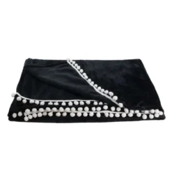THE HOME DECO FACTORY Plaid A Pompons Bicolore Flanelle M6 – Noir