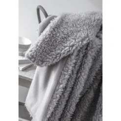 SOLEIL D’ OCRE Plaid Polaire Sherpa Microfibre Anais – 110 X 160 Cm – Gris