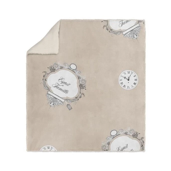 SOLEIL D’ OCRE Plaid Polaire Sherpa Microfibre Esprit De Famille – 110 X 160 Cm – Taupe